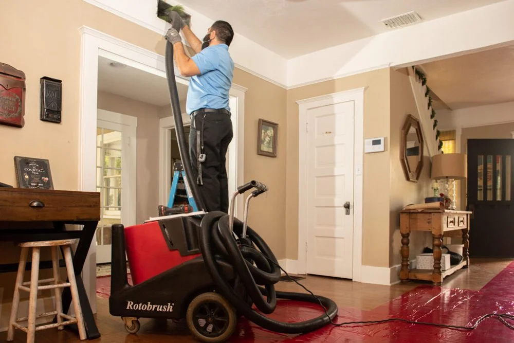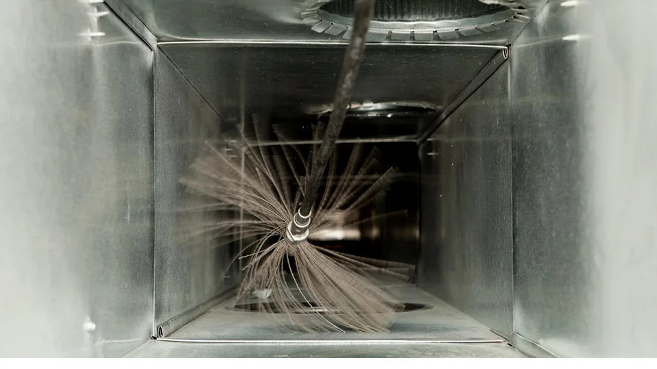• Carefully inspecting the pipes before cleaning to identify any contaminated areas. We use the Rotobrush with precision on each branch of the AC duct and place a nebulizer in the airway. This produces an anti-fungal disinfectant that eliminates any bacteria still present in the pipes.